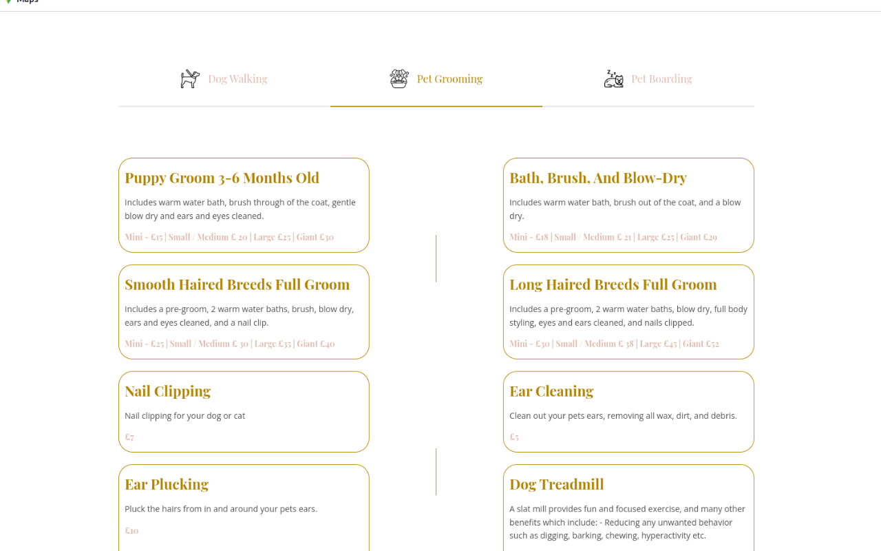 A minimalist design was chosen to highlight the services and pets, with Bootstrap used for its responsive features. SEO strategies were put in place to target relevant keywords. A booking page was also integrated to streamline the appointment scheduling process.